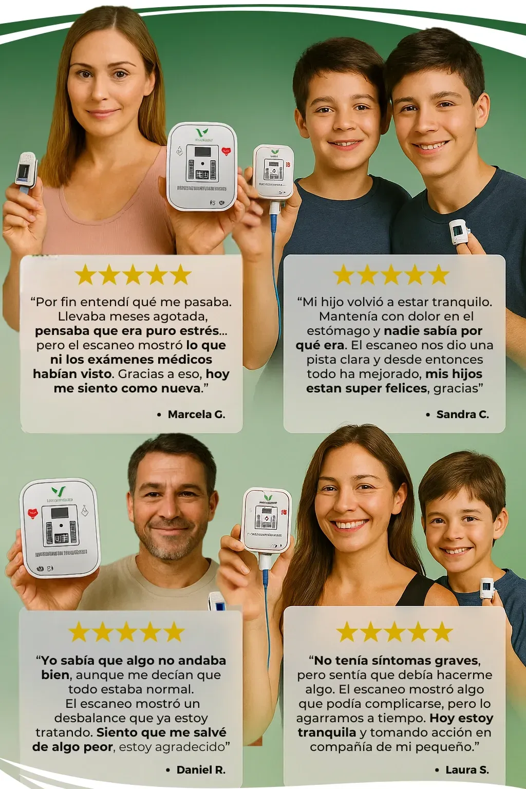 No. Es totalmente indoloro, no invasivo y toma solo unos minutos. Funciona mediante sensores bioeléctricos que leen el estado energético del cuerpo.